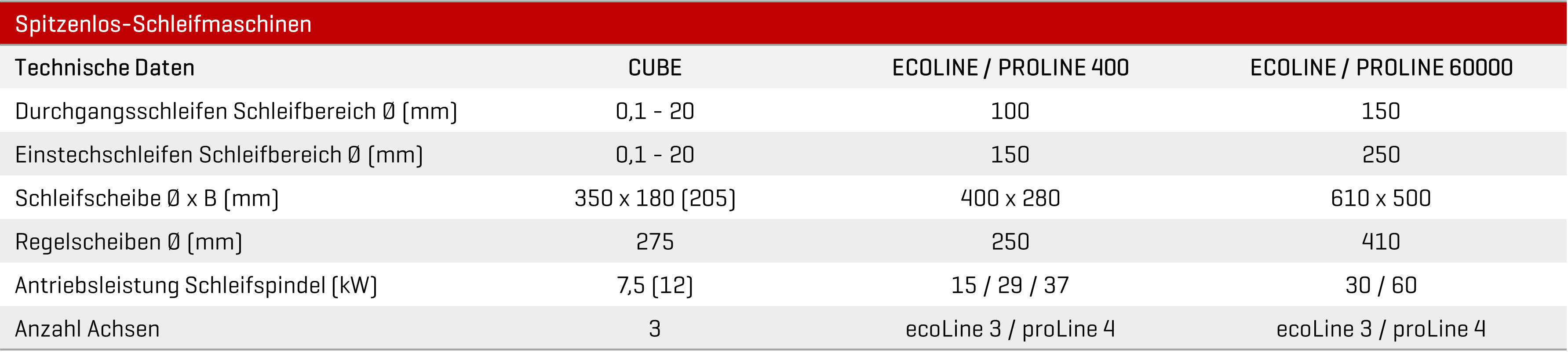 Mit den patentgeschützten (EP 1330336 / LIS 7223159] Baureihen CUBE 350, ecoLine/ proLine 400 und ecoLine/ proLine 600 bietet TSCHUDIN ein einzigartiges Konzept für spitzenlose Rundschleifmaschinen, Sie werden in allen lndustrien eingesetzt, in denen mechanische Bauteile in hoher Genauigkeit und zu wirtschaftlichen Stückkosten erforderlich sind von der Medizinaltechnik, der Einspritztechnik, der Hydraulik, dem Automobilbau, der Antriebstechnik, der Lagerindustrie und dem Werkzeugbau bis hin zur Luft- und Raumfahrt.
